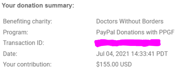 Thank You to everyone who supported the June donation event for Doctors Without Borders!! With everyone’s amazing and beautiful support, we have achieved $105 USD in donation funds. Including the $50 matched by SurrealSky, the total donation amount is $155 USD!